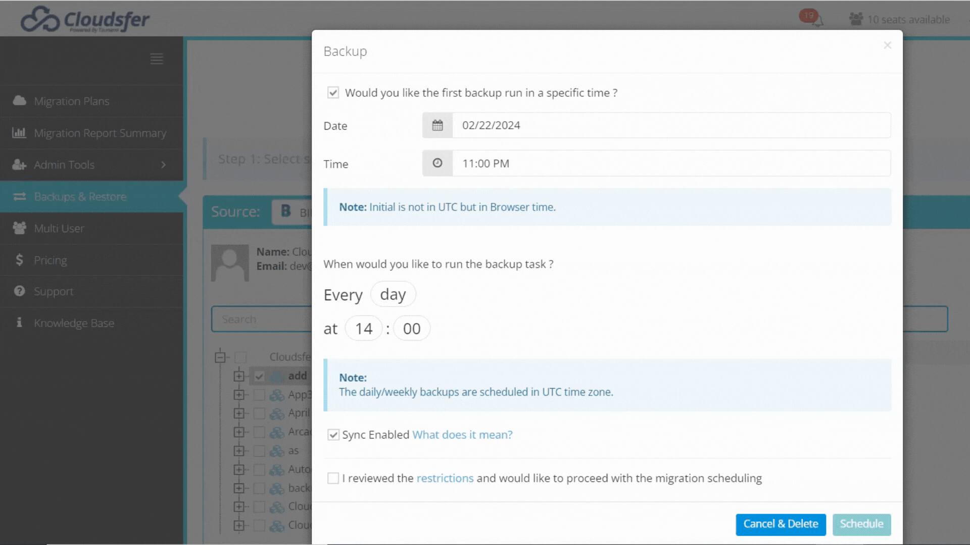 Cloudsfer allows you to schedule backups automatically, ensuring that your data is consistently protected.